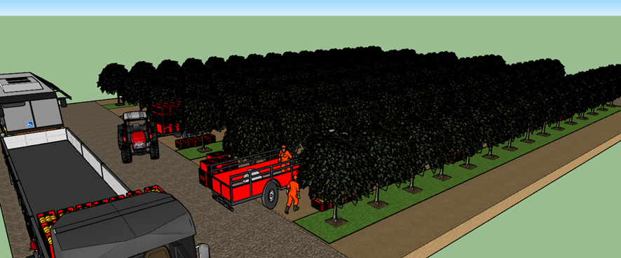 • Estudo dos tempos e movimentos da distância média percorrida em diversos pomares;