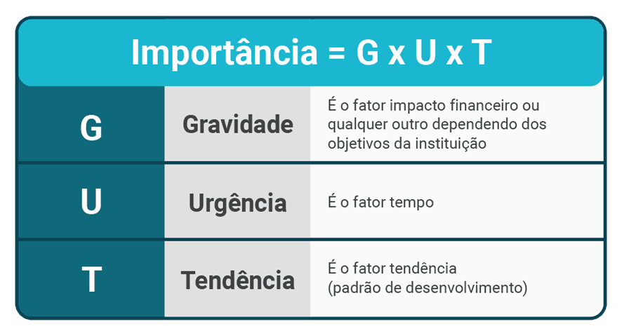 O segredo para compreender e utilizar a matriz GUT com eficiência está em conhecer seus 3 critérios de classificação dos problemas. Vamos ver cada um deles ao lado.